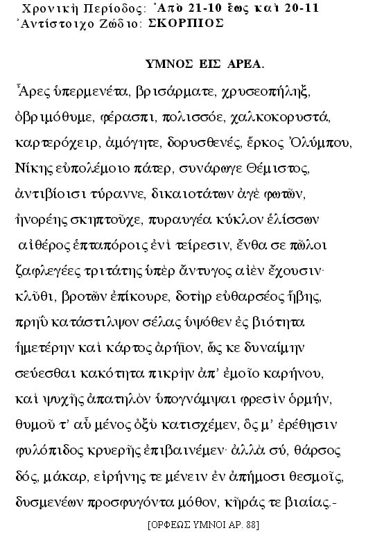 ΟΡΦΙΚΟΣ ΥΜΝΟΣ ΑΡΕΩΣ